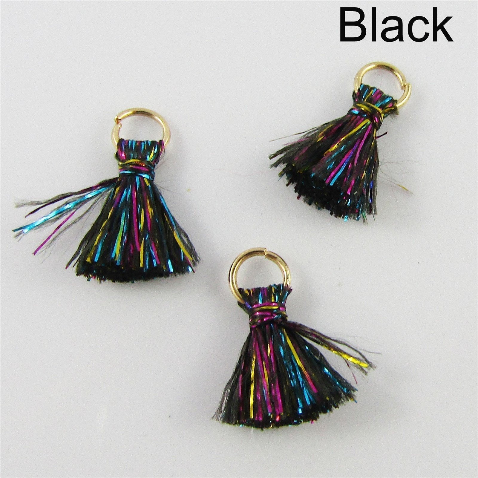 10pce TINY Metallic Thread Tassel with Jumpring 15mm Select Colour