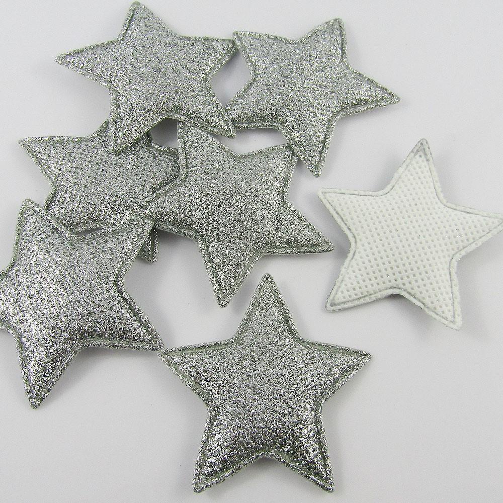 10pcs Glitter Star Padded Puffy Patch Craft Embellishment 51x54mm Select Colour