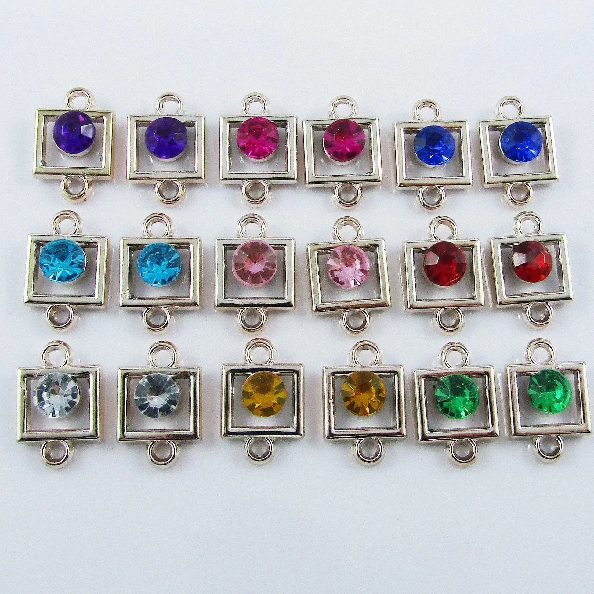 10pcs in Random Pairs Square Rhinestone Connector Charm Pendant 23x15mm ACRYLIC