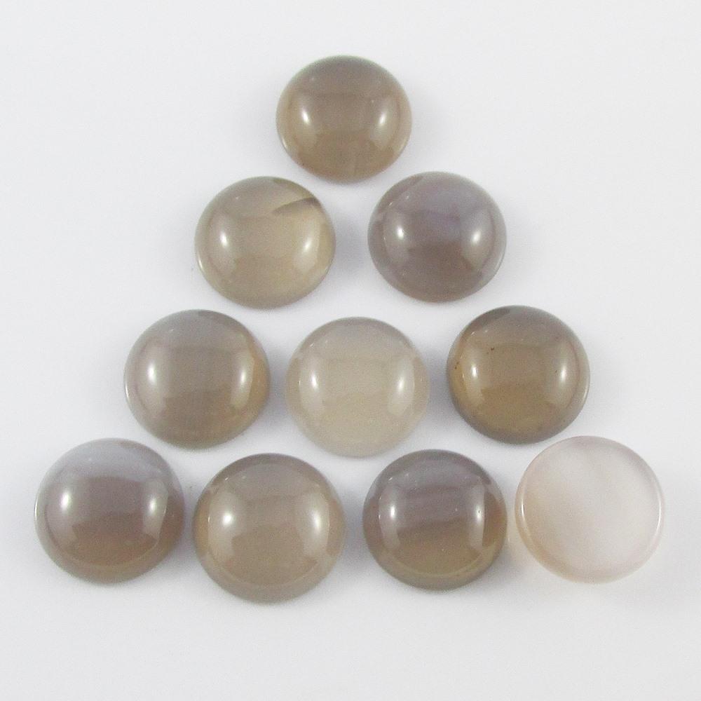 10pcs Natural Grey Agate Gemstone Cabochon 12mm Round Flat Back Earring etc