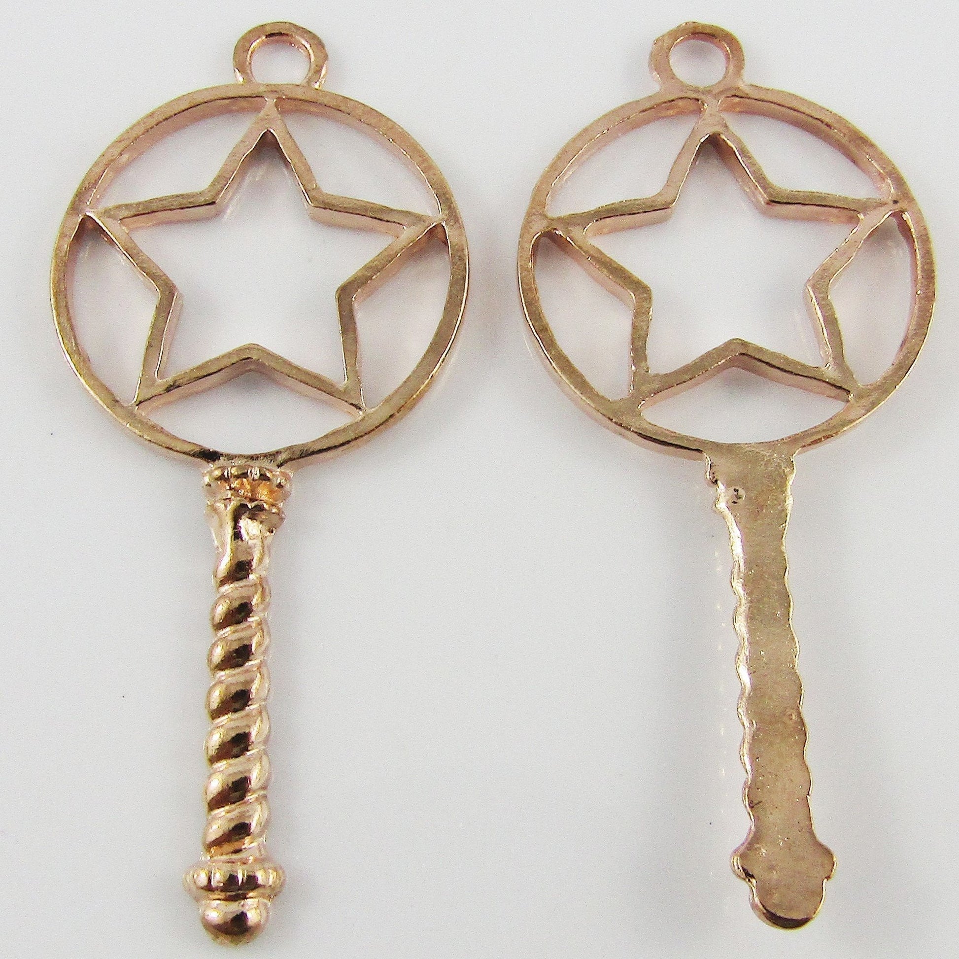 10pcs Star Fairy Wand Charm Pendant Rose Gold 54x24mm Open Bezel