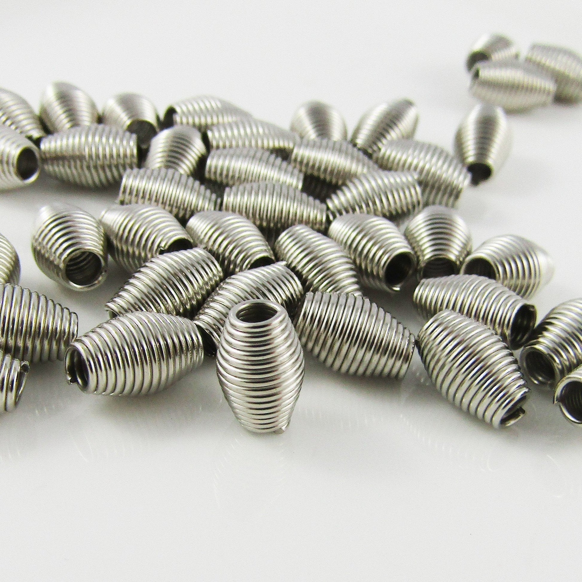 50g 95+pcs Spring Coil Spacer Beads Craft etc 9x6mm Hole 2mm Silver Tone