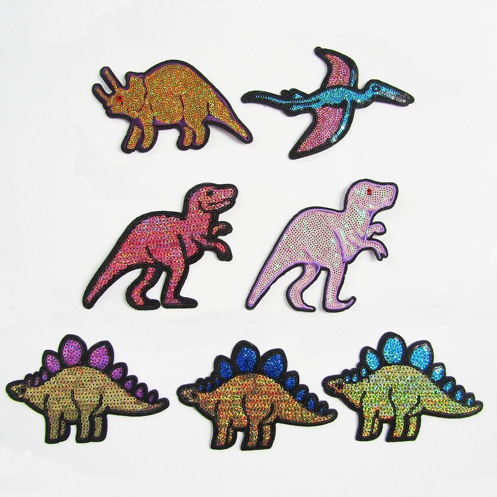 7pce Set Iron on / Sew On Dinosaurs Sequins Cloth Patches 90-120x150-161mm