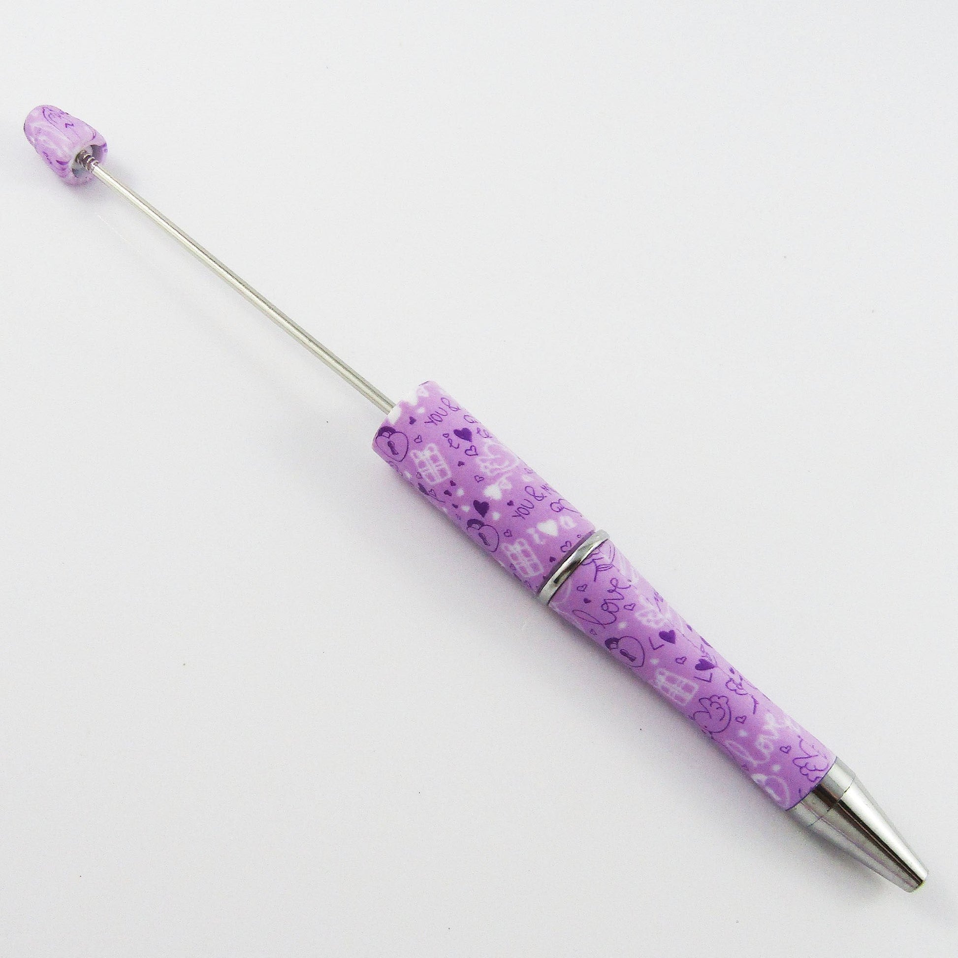Blank DIY Valentine's Day Lilac Love Heart Print Beadable Pen 144mm Select Qty