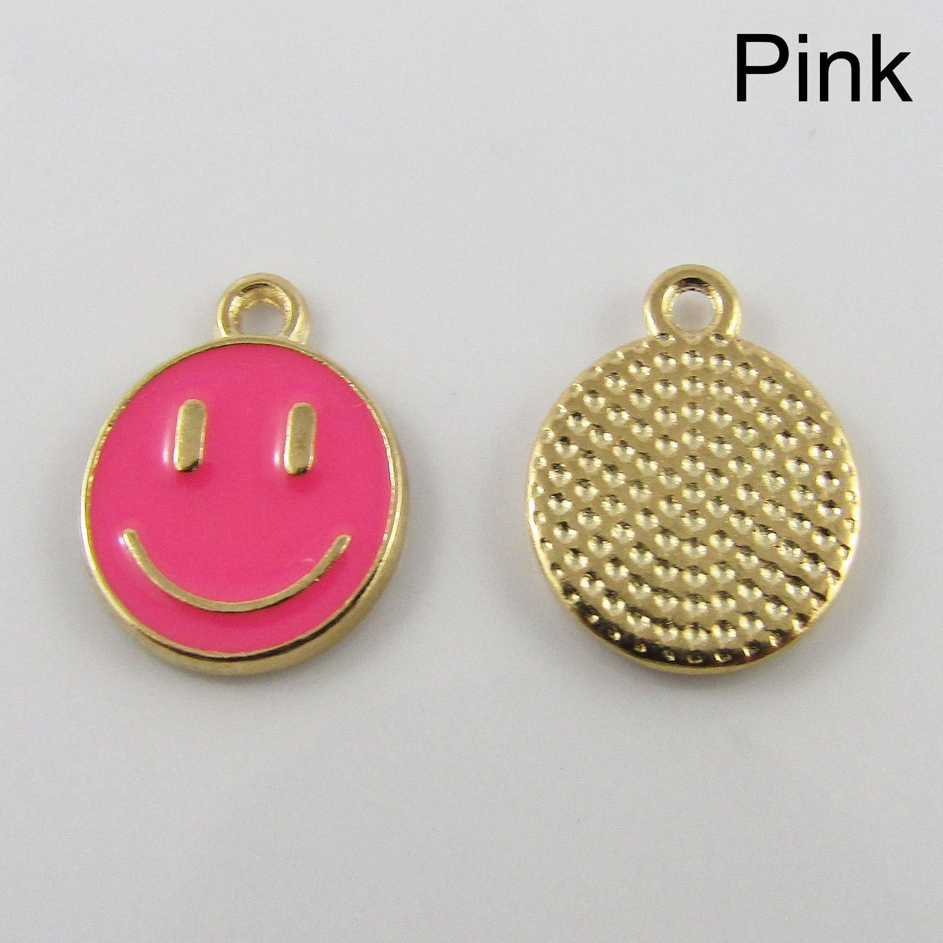 Bulk 10pce Enamel Smiley Face Charm Pendant 14x12mm Select Colour