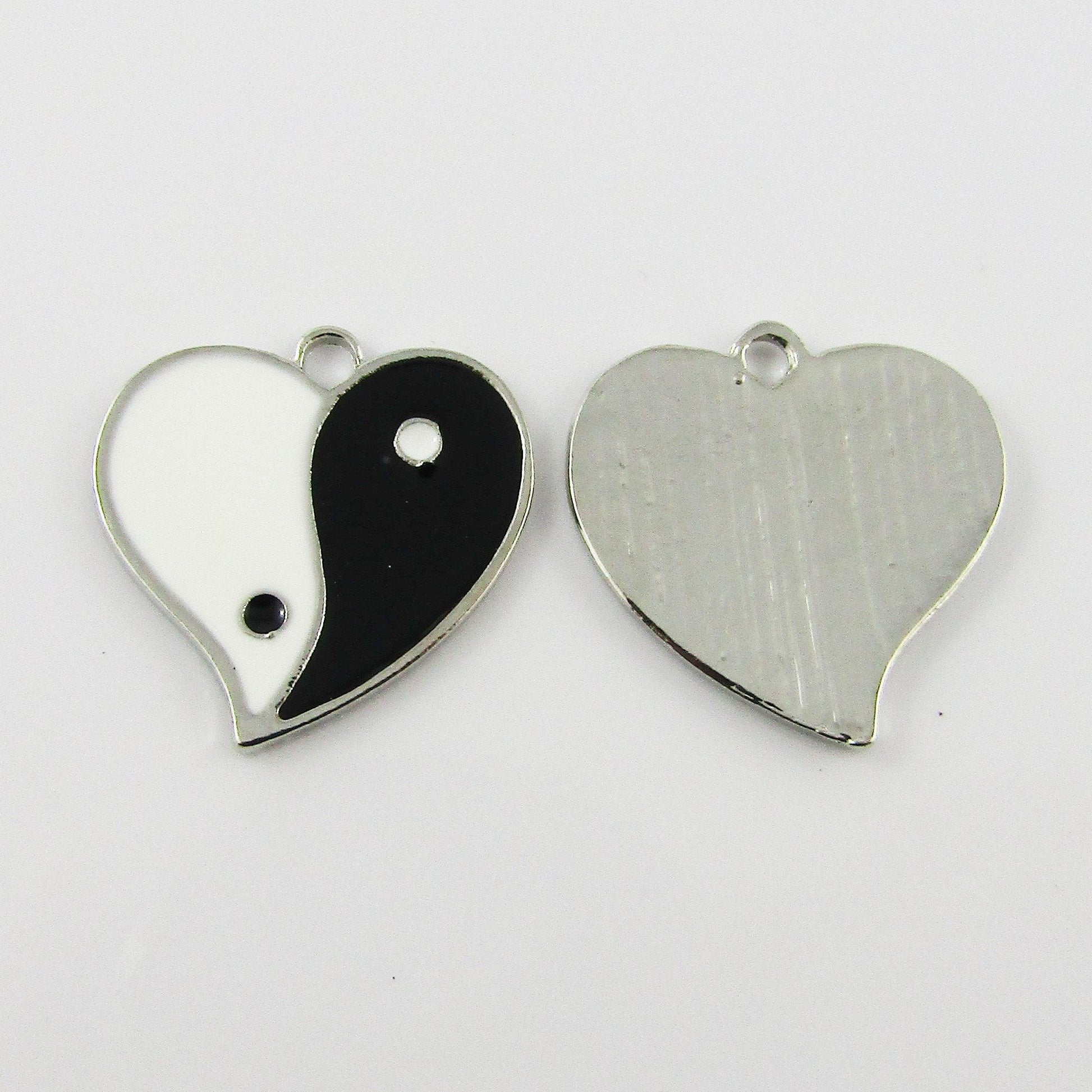 Bulk 10pce Enamel Yin Yang Heart Charm Pendant Couple Dark Light 21x21mm