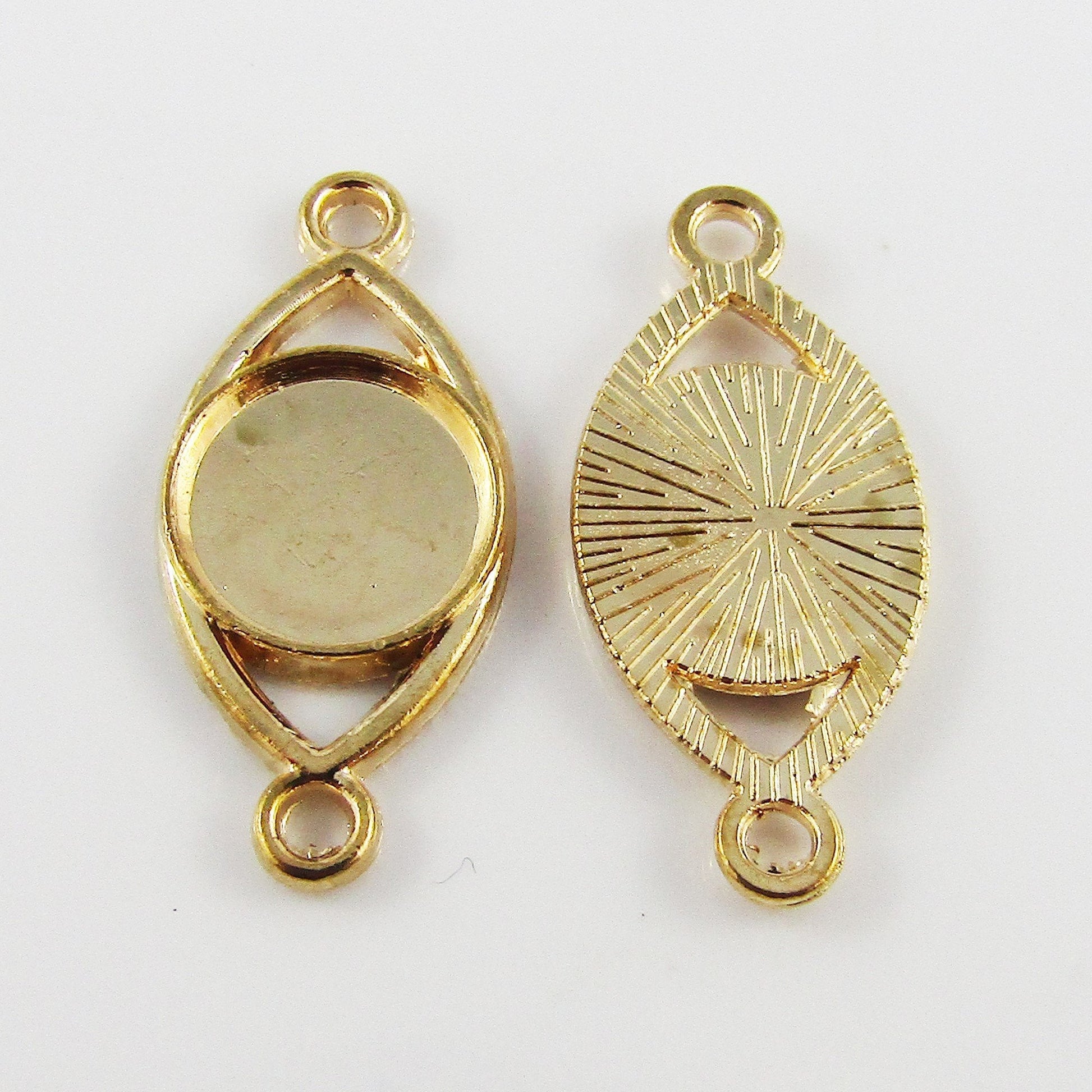 Bulk 10pcs Horse Eye Cabochon Connector Setting Alloy Fit 10mm ROUND Cabs Gold