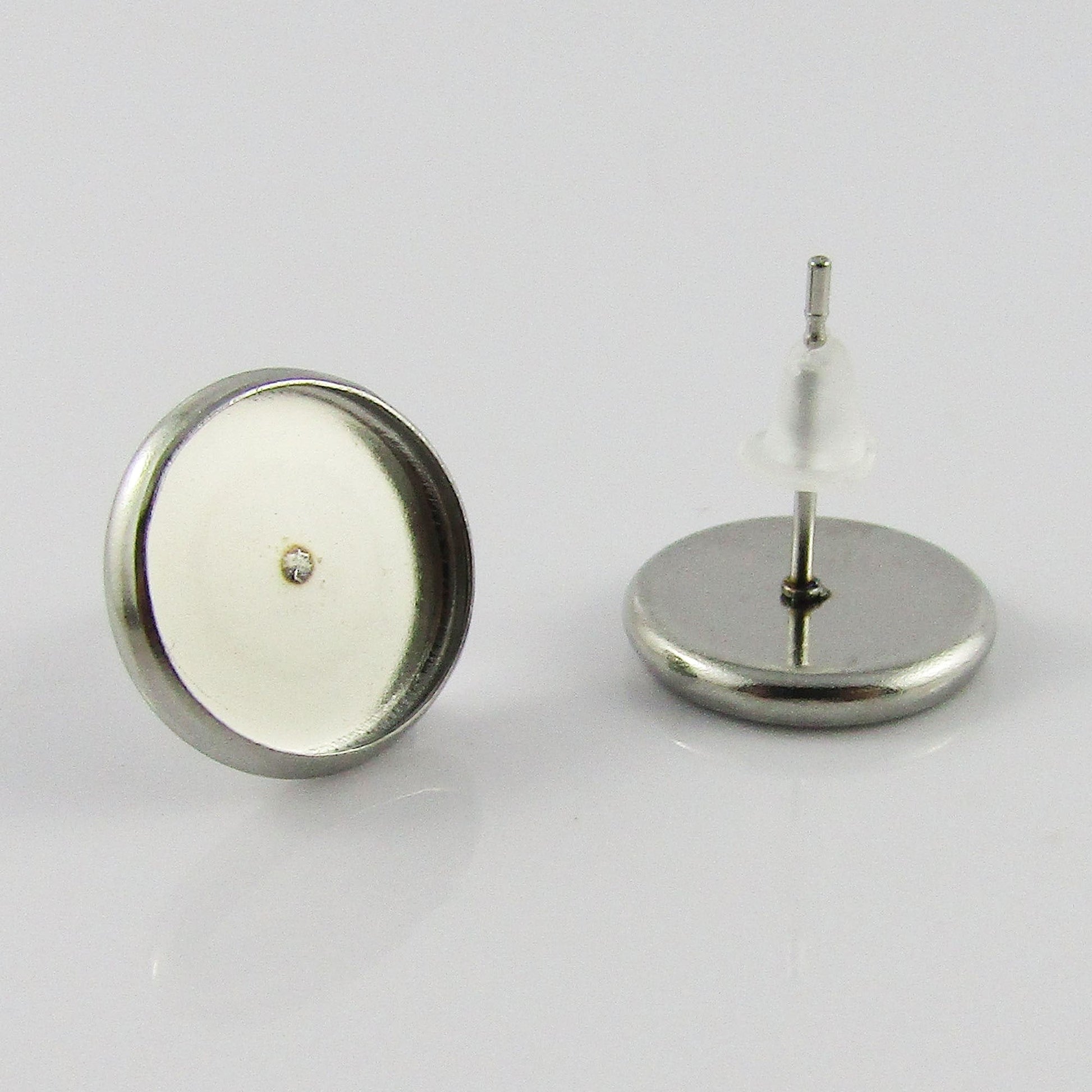 Bulk 20pcs (10pair) DIY Cabochon Setting Post Stud Earring Fits 10mm Cabs 304SS