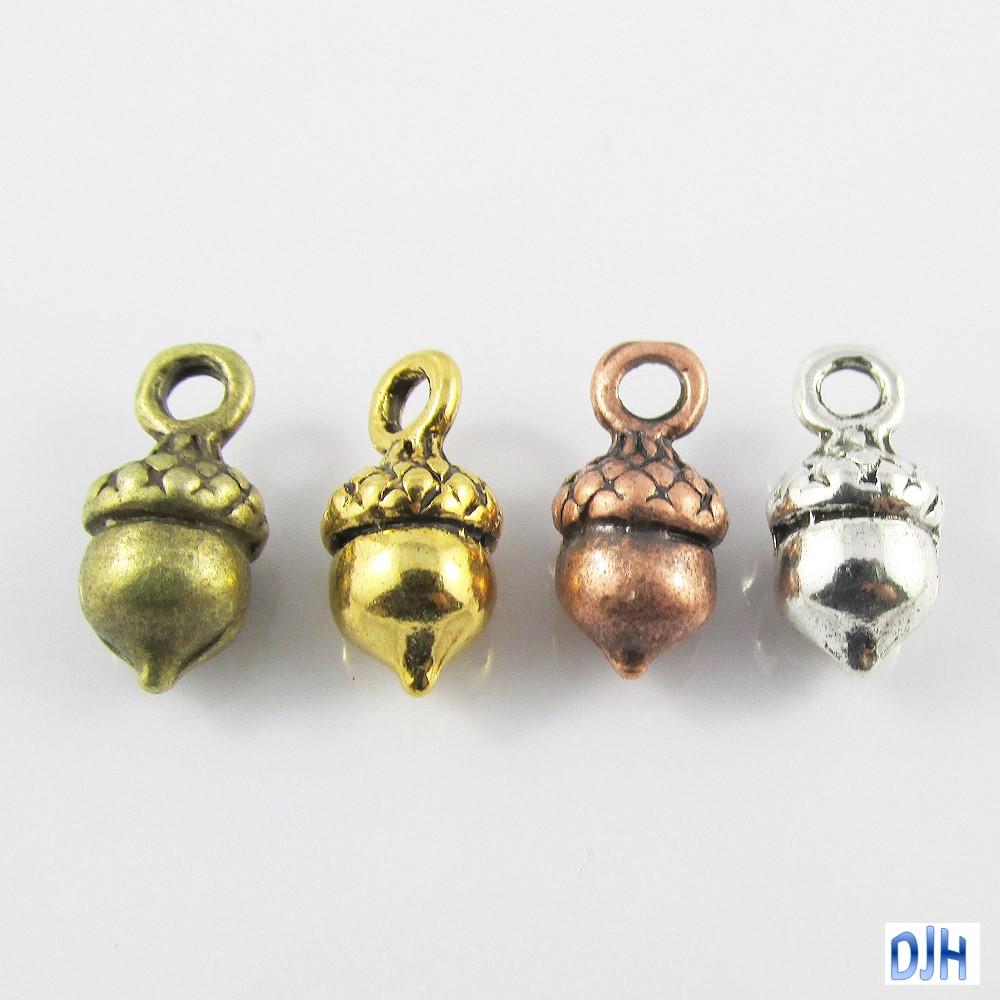 Bulk 3D Mini Acorn Charm Pendant 14x7mm Pack of 10 Select Colour