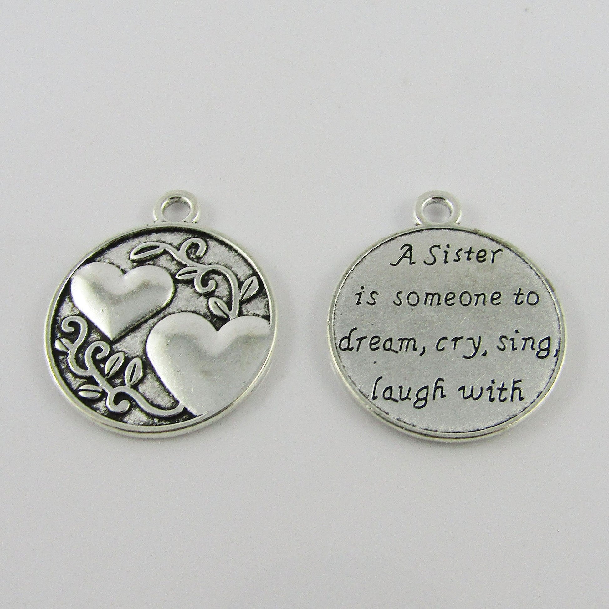 Bulk Double Hearts A Sister Charm Pendant Family Alloy 24x29mm Select Qty
