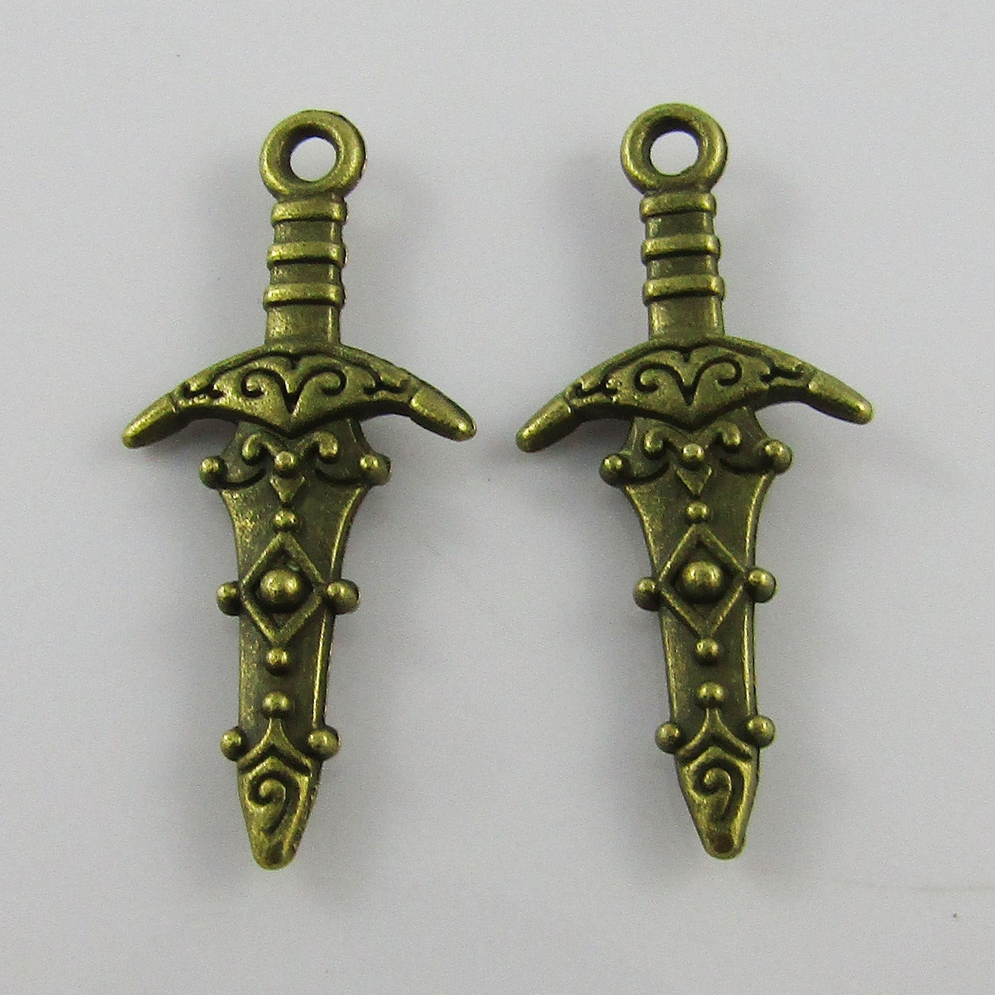 Bulk Engraved Dagger Charm Pendant Antique Bronze 28x12mm Alloy Select Qty