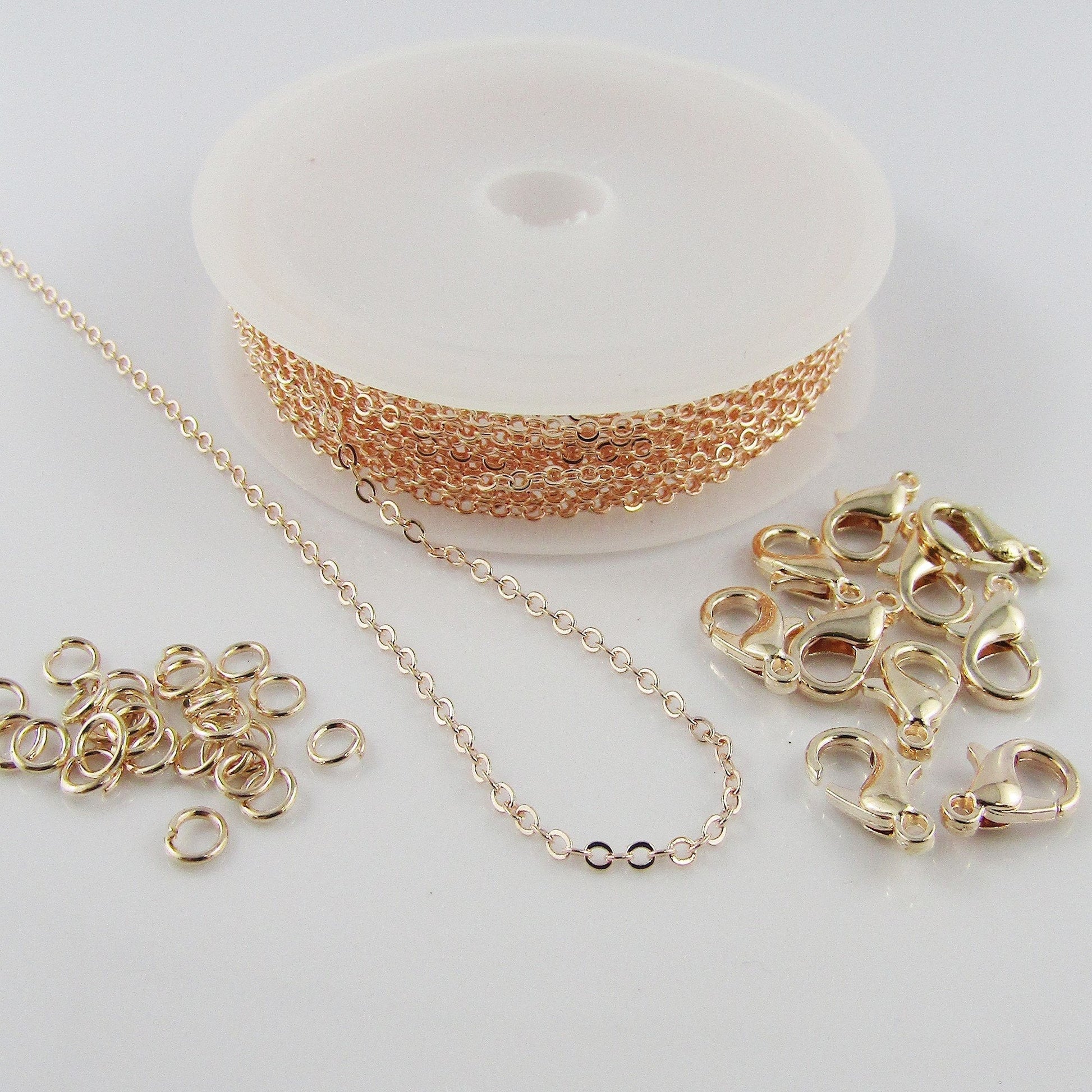 DIY 3m Cable Chain Jewellery Making Kit with Jumprings & Parrot Clasps Rose Gold