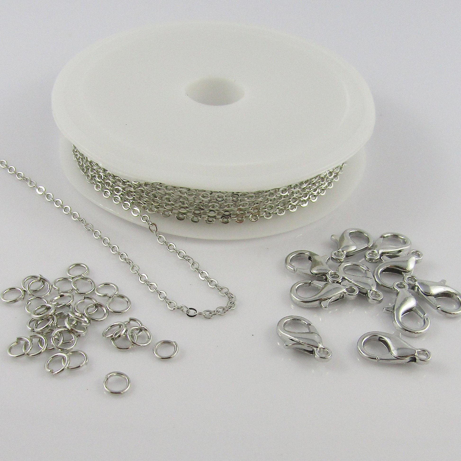 DIY 3mtr Cable Chain Jewellery Making Kit with Jumprings & Parrot Clasps SILVER